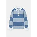 Het rugby shirt in een jeans uitvoering! Met banen in twee verschillende kleuren blauw, afgezet met witte kraag en manchetten.