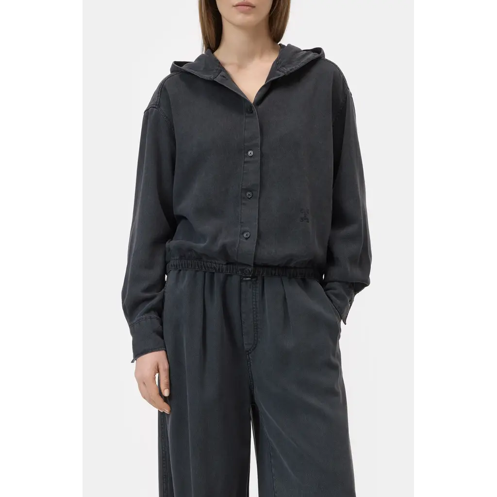 blouse met capuchon in black