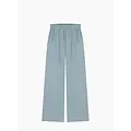 Enkellange katoenen broek met elastische tailleband, twee steekzakken en een grote zak op de rechter achterkant.
