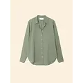 Het meest verkochte model van Xirena, de Beau shirt, nu in de nieuwe kleur dark seagrass. De blouse heeft lange mouwen, een kraag en valt wat losser.
